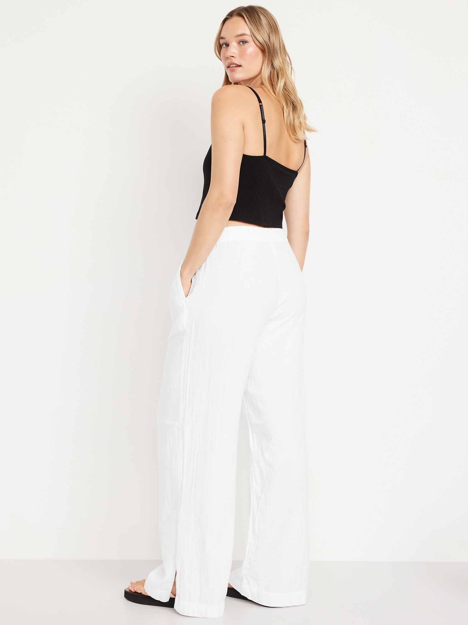High-Waisted Crinkle Gauze Super Wide-Leg Pants