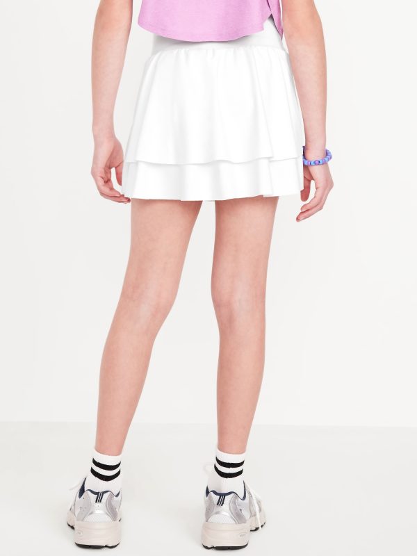 High-Waisted Crossover PowerSoft Skort for Girls: built-in biker shorts, high-rise, crossover elasticized waistband, mini-length skirt, side pocket on shorts, easy pull-on style, #696570