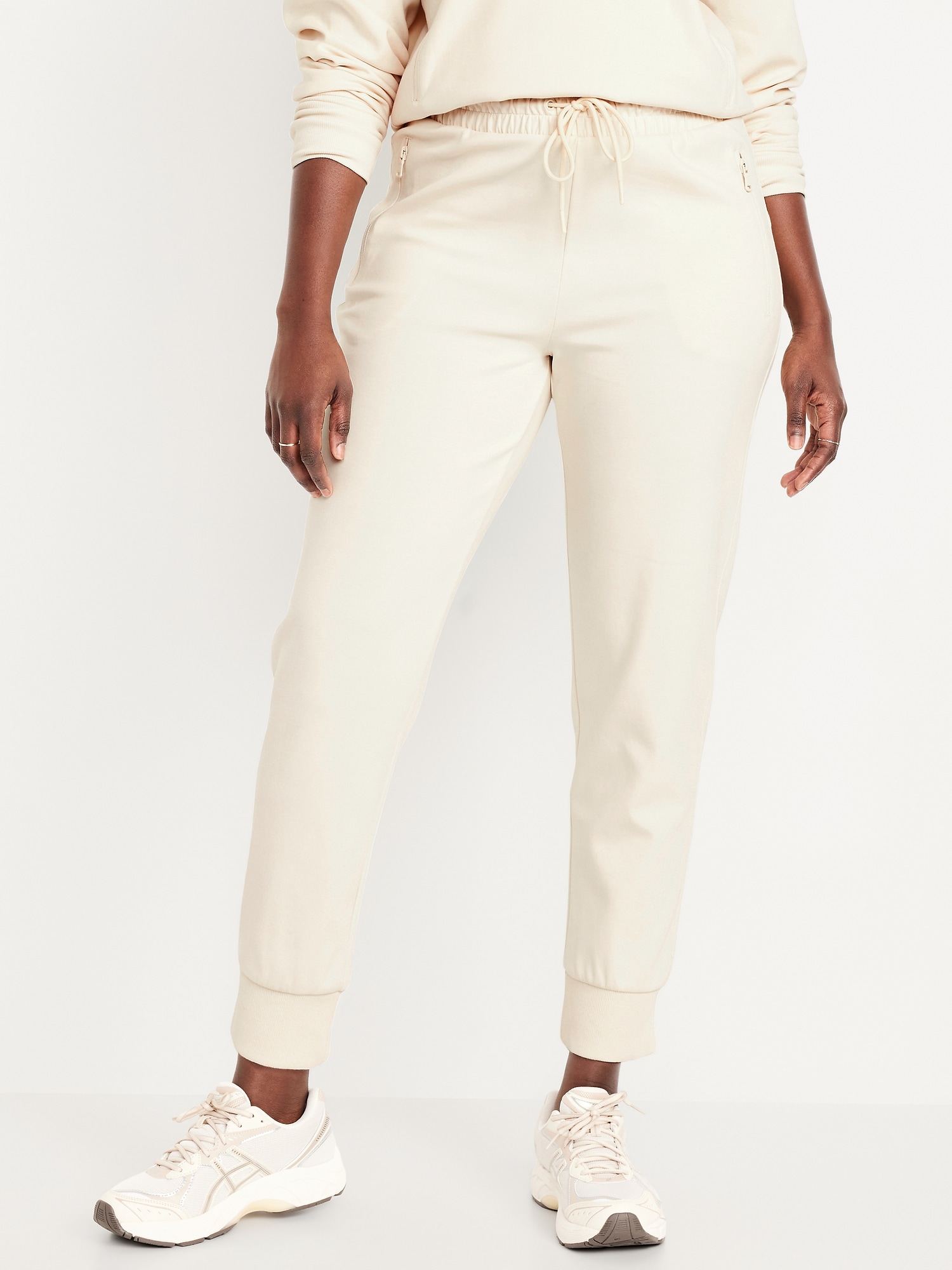 High-Waisted Dynamic Fleece Jogger Sweatpants: Featuring Dynamic Fleece. Soft, smooth fleece plus made-to-move stretch.elastic-drawstring waist, faux fly, zippered hip pockets, cuffed leg, available in maternity sizes, #813448