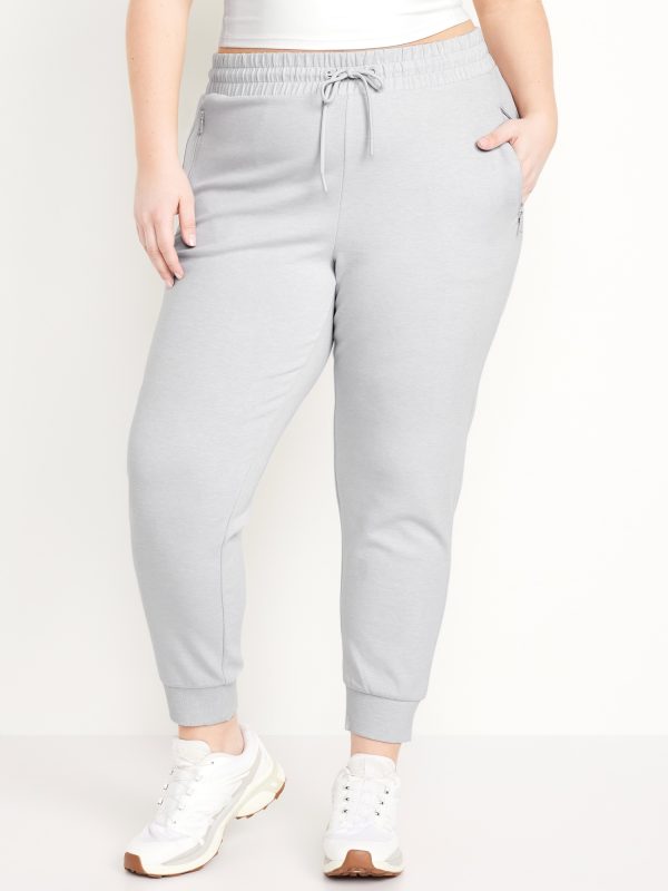High-Waisted Dynamic Fleece Jogger Sweatpants: Featuring Dynamic Fleece. Soft, smooth fleece plus made-to-move stretch.elastic-drawstring waist, faux fly, zippered hip pockets, cuffed leg, available in maternity sizes, #813448