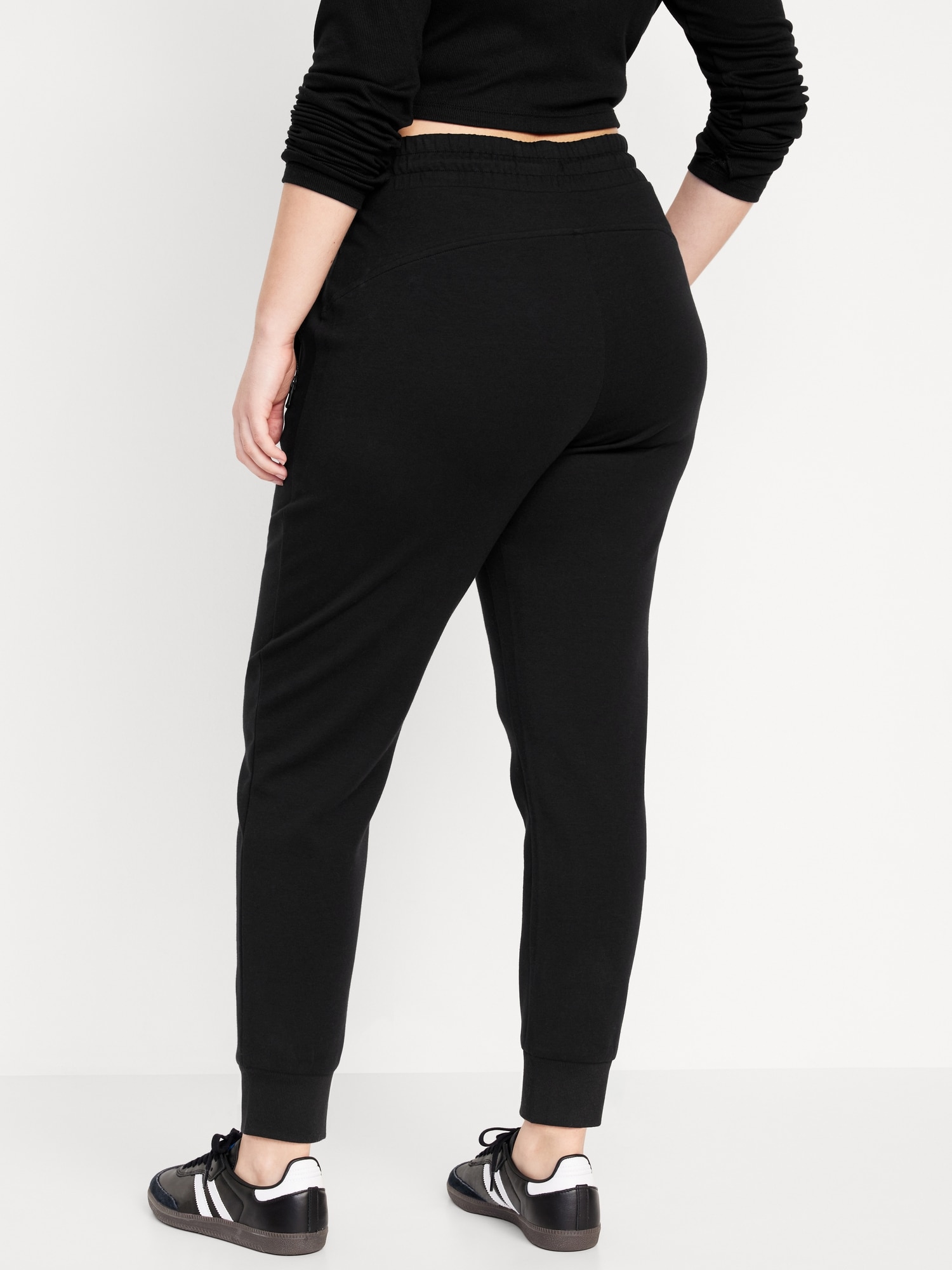 High-Waisted Dynamic Fleece Jogger Sweatpants: Featuring Dynamic Fleece. Soft, smooth fleece plus made-to-move stretch.elastic-drawstring waist, faux fly, zippered hip pockets, cuffed leg, available in maternity sizes, #813448