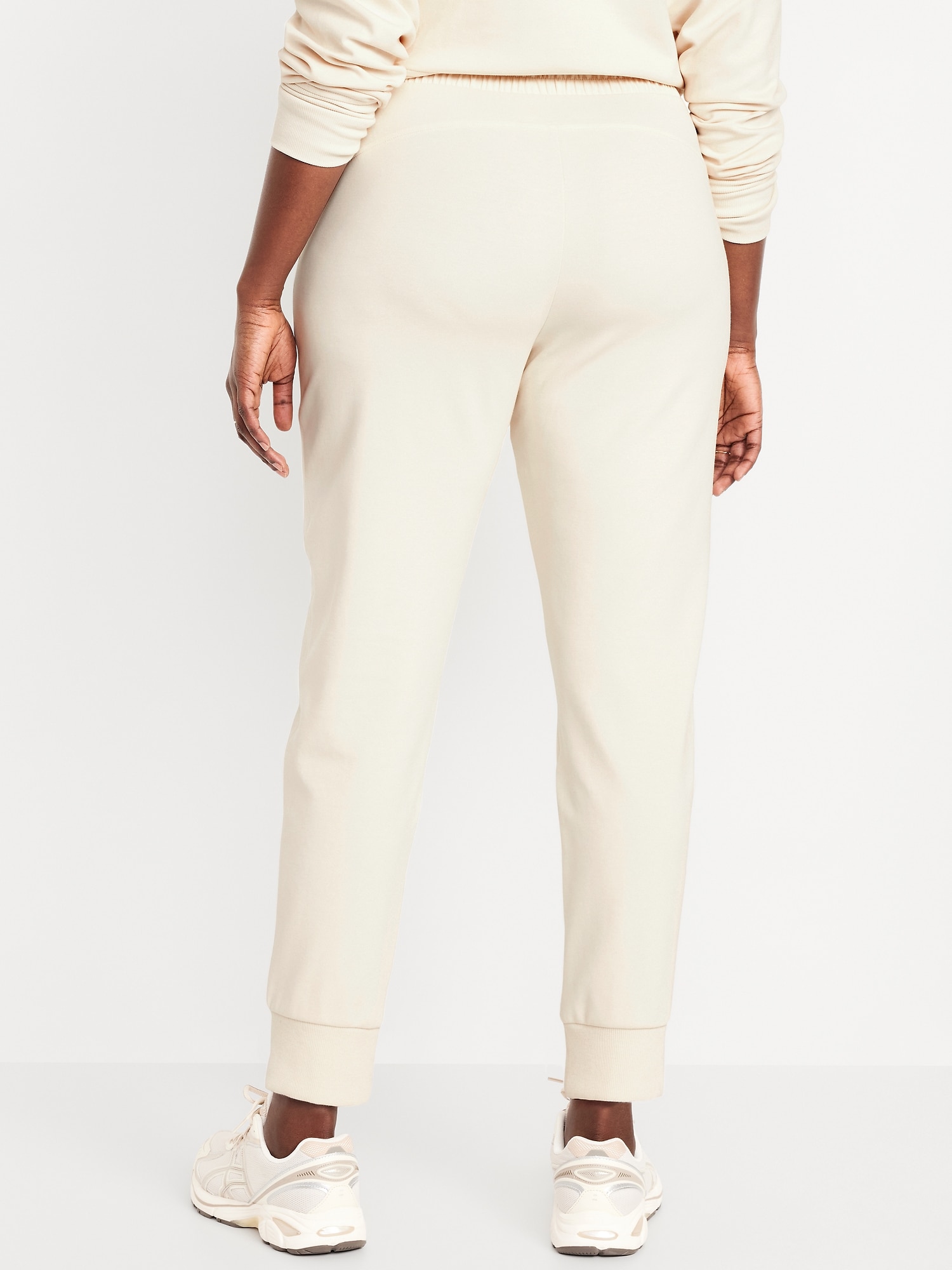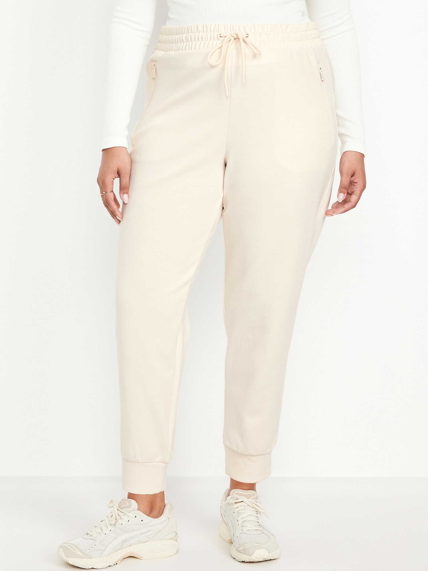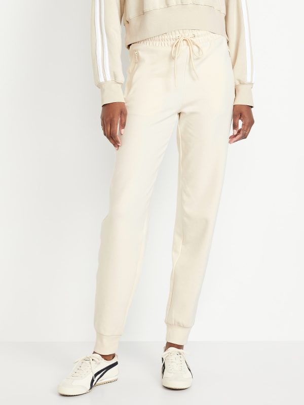 High-Waisted Dynamic Fleece Jogger Sweatpants: Featuring Dynamic Fleece. Soft, smooth fleece plus made-to-move stretch.elastic-drawstring waist, faux fly, zippered hip pockets, cuffed leg, available in maternity sizes, #813448