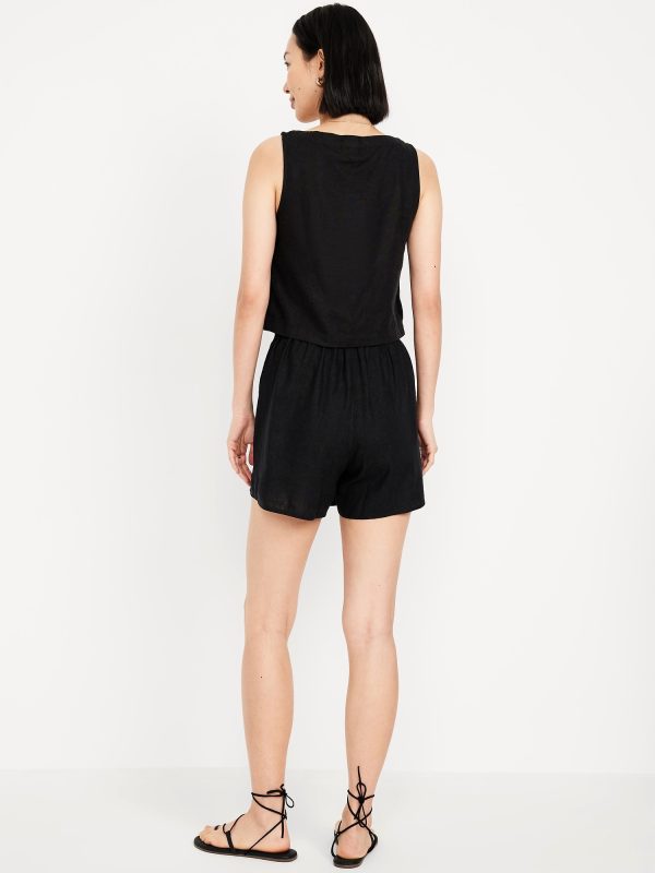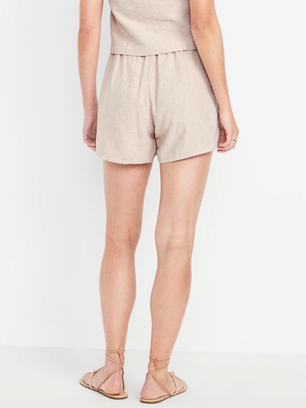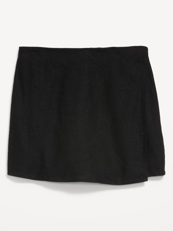 High-Waisted Faux-Wrap Linen-Blend Mini Skort: faux-wrap front, elastic back waist, built-in shorts, #766917