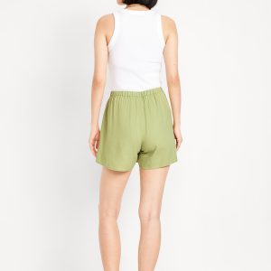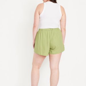 High-Waisted Faux-Wrap Linen-Blend Mini Skort: faux-wrap front, elastic back waist, built-in shorts, #766917