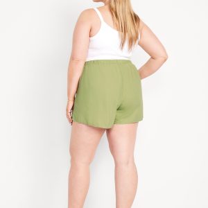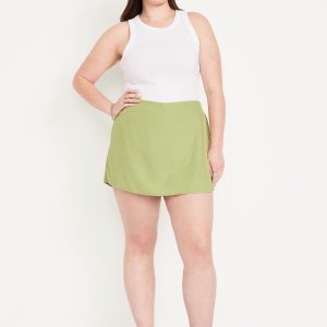 High-Waisted Faux-Wrap Linen-Blend Mini Skort: faux-wrap front, elastic back waist, built-in shorts, #766917