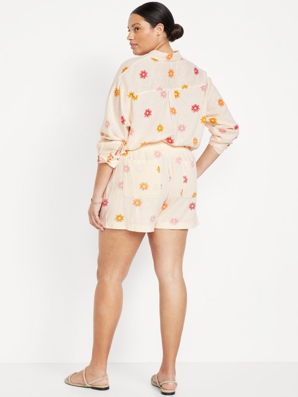 High-Waisted Linen-Blend Pull-On Shorts — 3.5-inch inseam