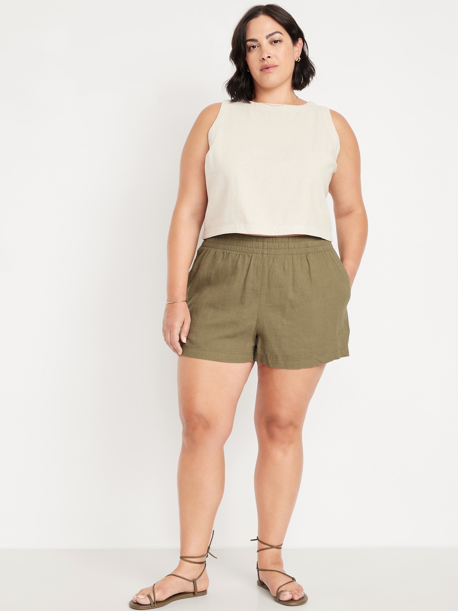 High-Waisted Linen-Blend Shorts — 3.5-inch inseam