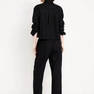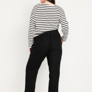 High-Waisted Linen-Blend Straight Ankle Pants: elasticized waistband, on-seam hip pockets, back patch pockets, straight leg, pull-on style, #683297
