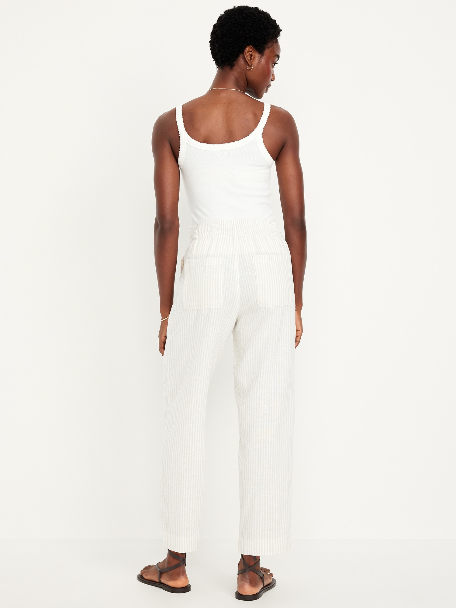 High-Waisted Linen-Blend Straight Ankle Pants: elasticized waistband, on-seam hip pockets, back patch pockets, straight leg, pull-on style, #683297