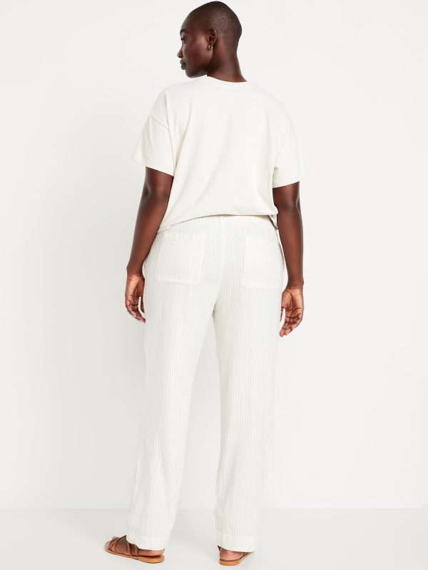 High-Waisted Linen-Blend Straight Ankle Pants: elasticized waistband, on-seam hip pockets, back patch pockets, straight leg, pull-on style, #683297