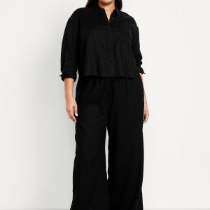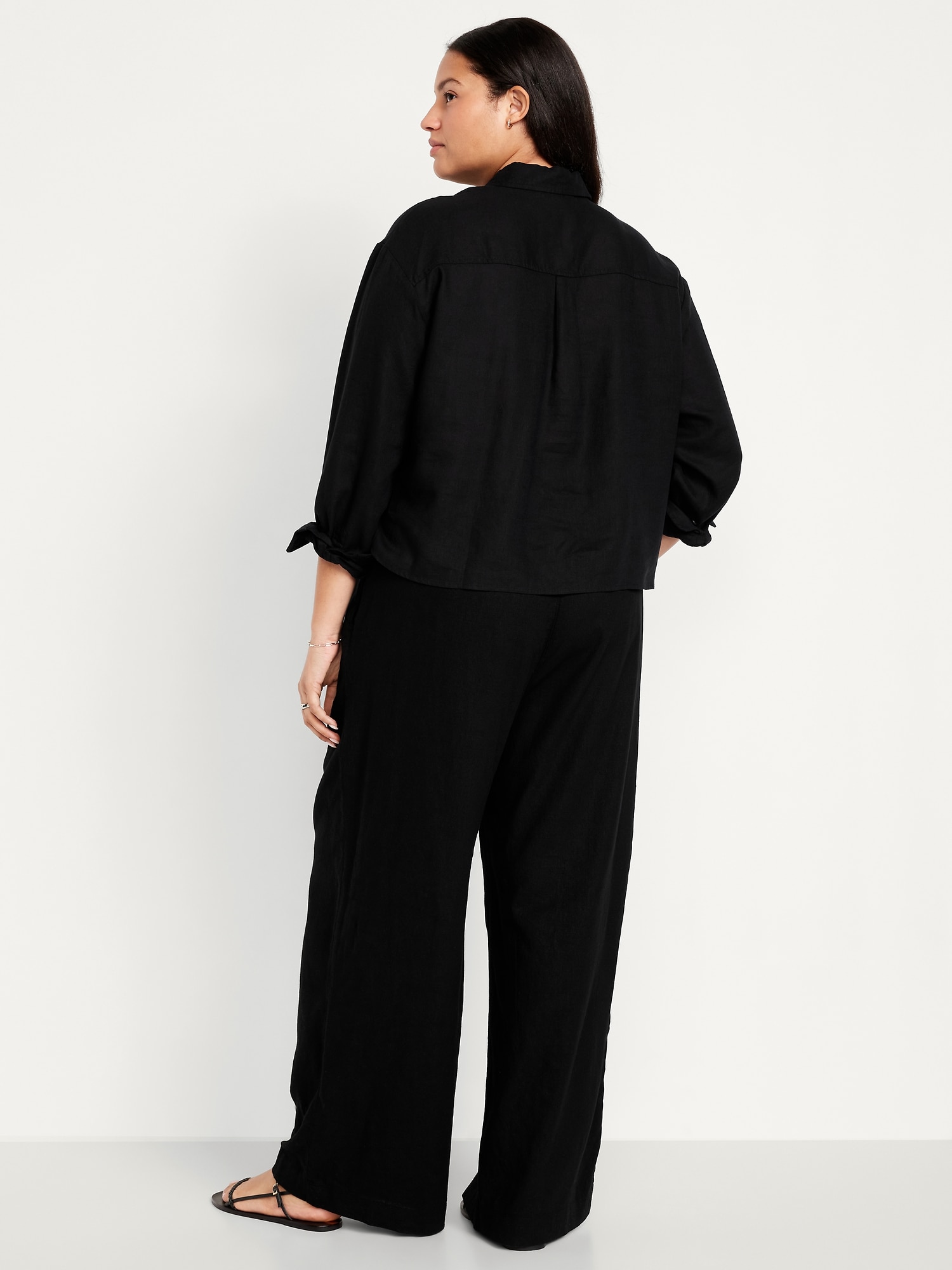 High-Waisted Linen-Blend Super Wide-Leg Pants