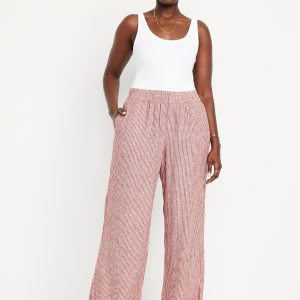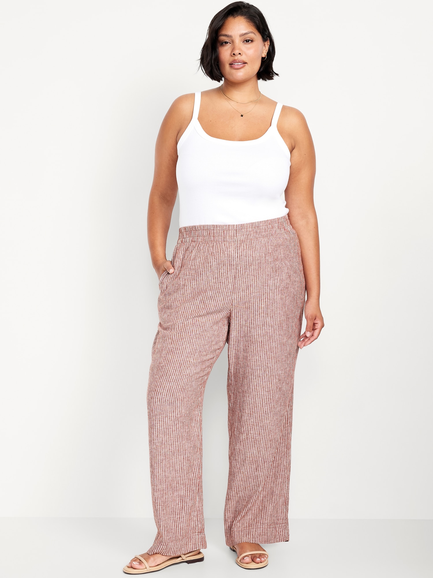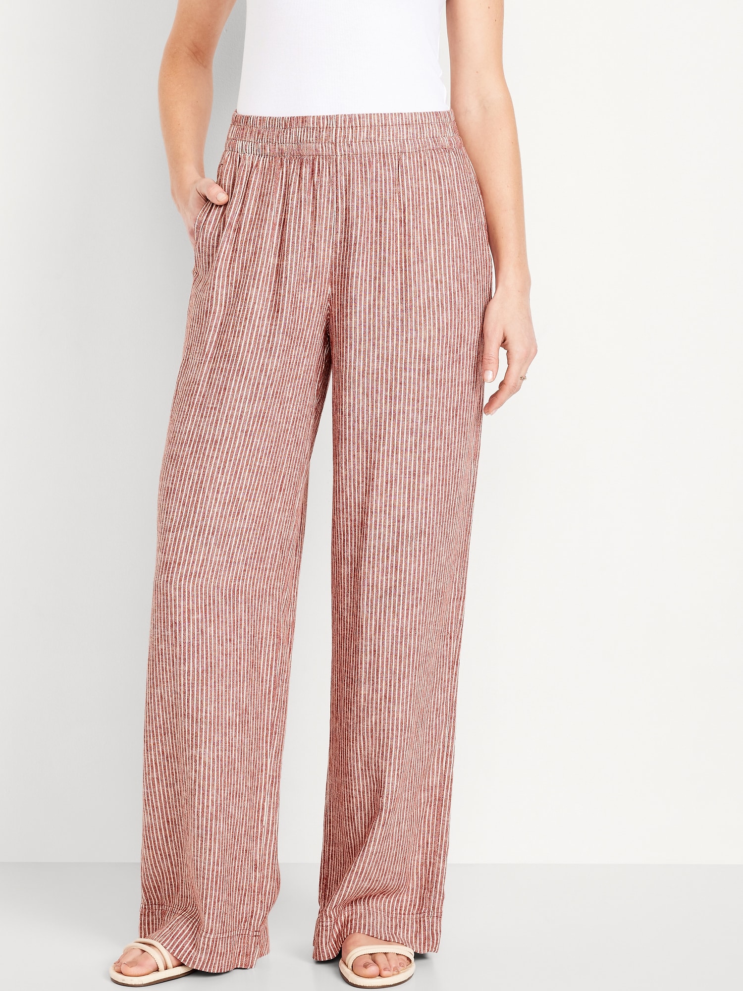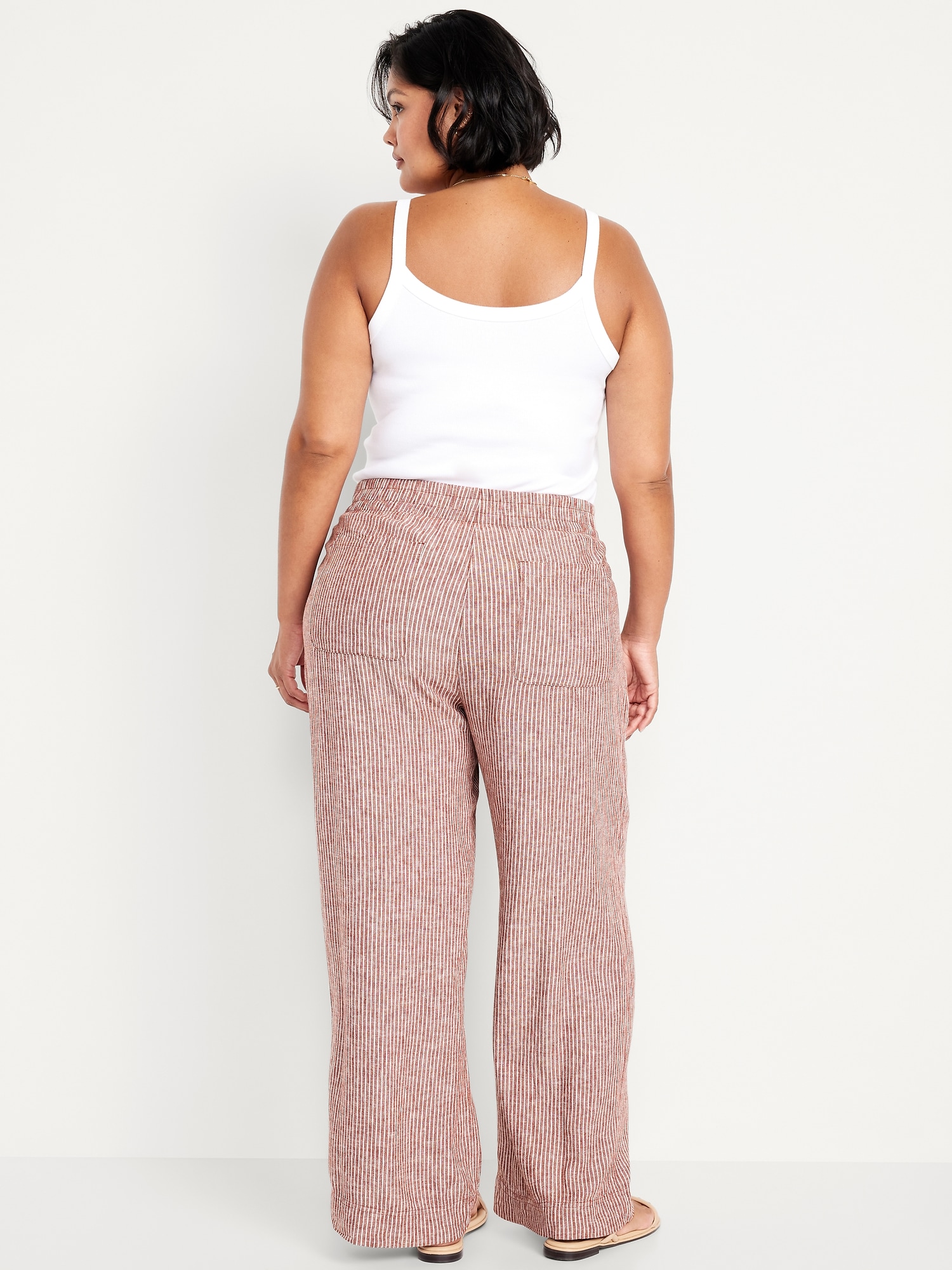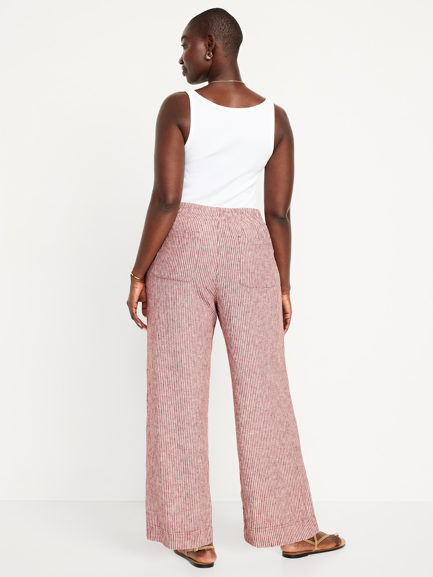 High-Waisted Linen-Blend Wide-Leg Pants: elastic-drawstring high waistband, on-seam hip pockets, super wide leg, easy pull-on style, online exclusive, #683345