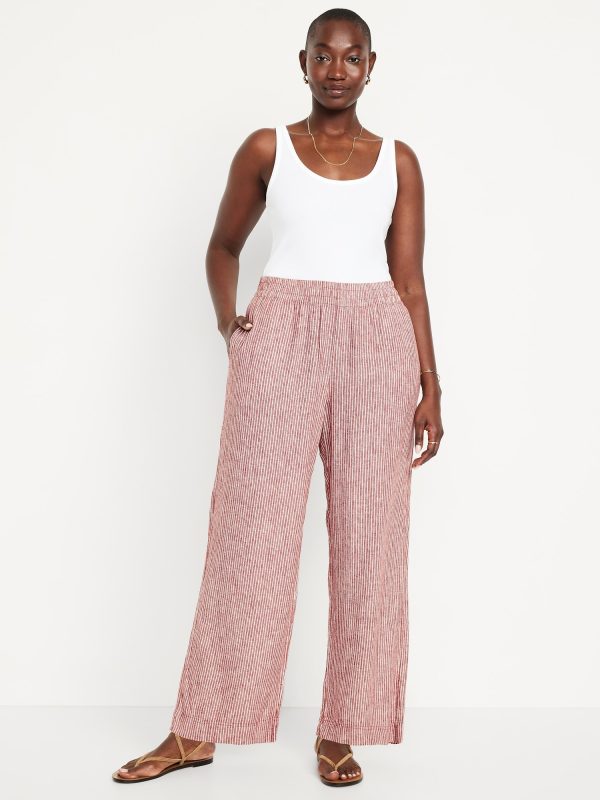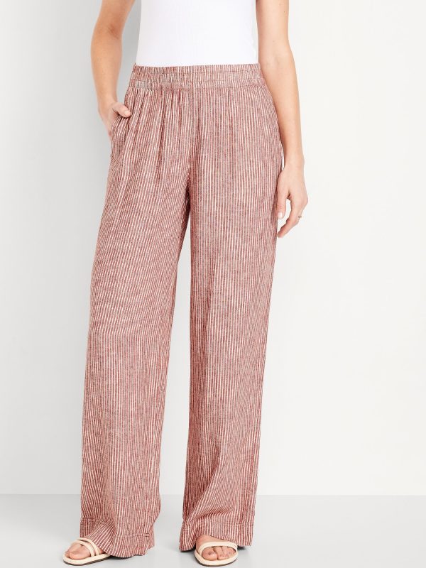 High-Waisted Linen-Blend Wide-Leg Pants: elastic-drawstring high waistband, on-seam hip pockets, super wide leg, easy pull-on style, online exclusive, #683345