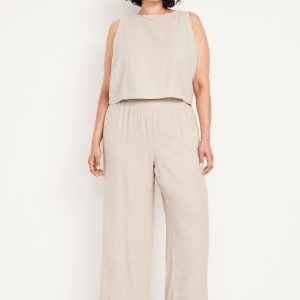 High-Waisted Linen-Blend Wide-Leg Pants: elastic-drawstring high waistband, on-seam hip pockets, super wide leg, easy pull-on style, online exclusive, #683345