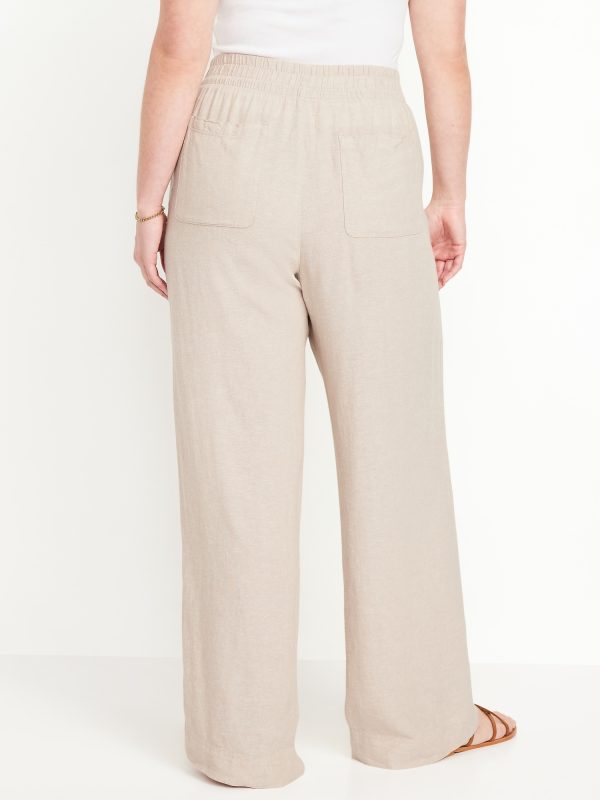 High-Waisted Linen-Blend Wide-Leg Pants: elastic-drawstring high waistband, on-seam hip pockets, super wide leg, easy pull-on style, online exclusive, #683345