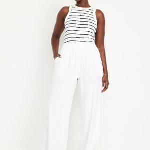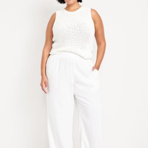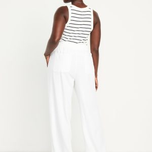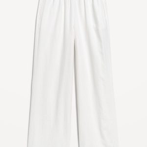 High-Waisted Linen-Blend Wide-Leg Pants: elastic-drawstring high waistband, on-seam hip pockets, super wide leg, easy pull-on style, online exclusive, #683345
