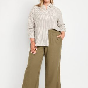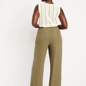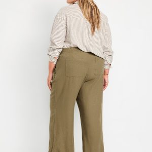 High-Waisted Linen-Blend Wide-Leg Pants: elastic-drawstring high waistband, on-seam hip pockets, super wide leg, easy pull-on style, online exclusive, #683345