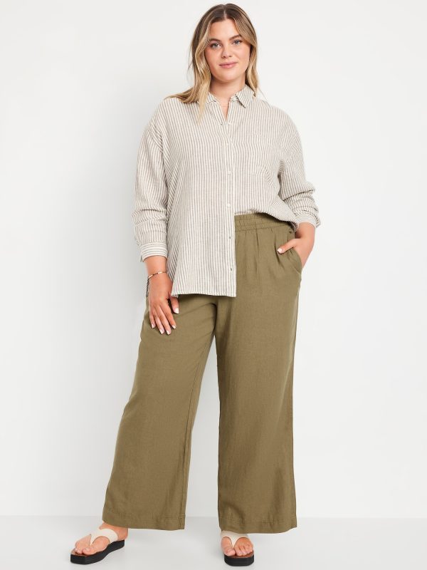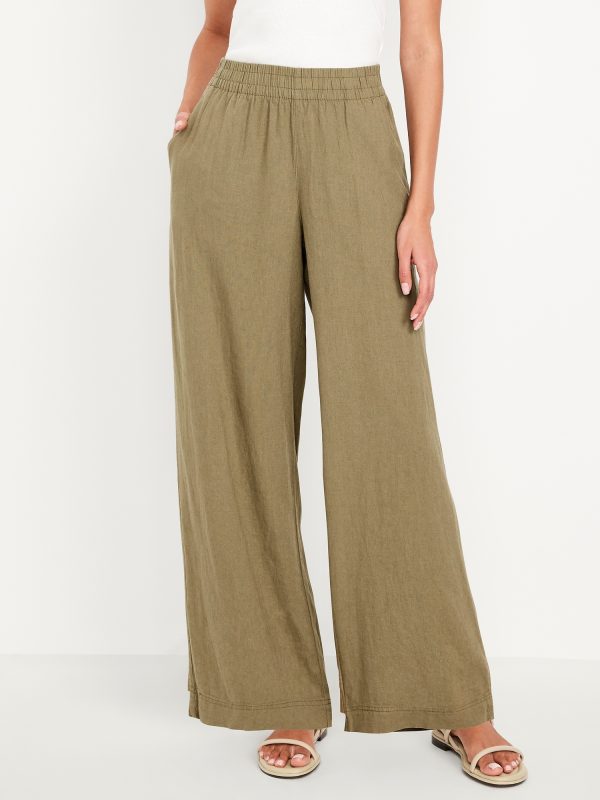 High-Waisted Linen-Blend Wide-Leg Pants: elastic-drawstring high waistband, on-seam hip pockets, super wide leg, easy pull-on style, online exclusive, #683345