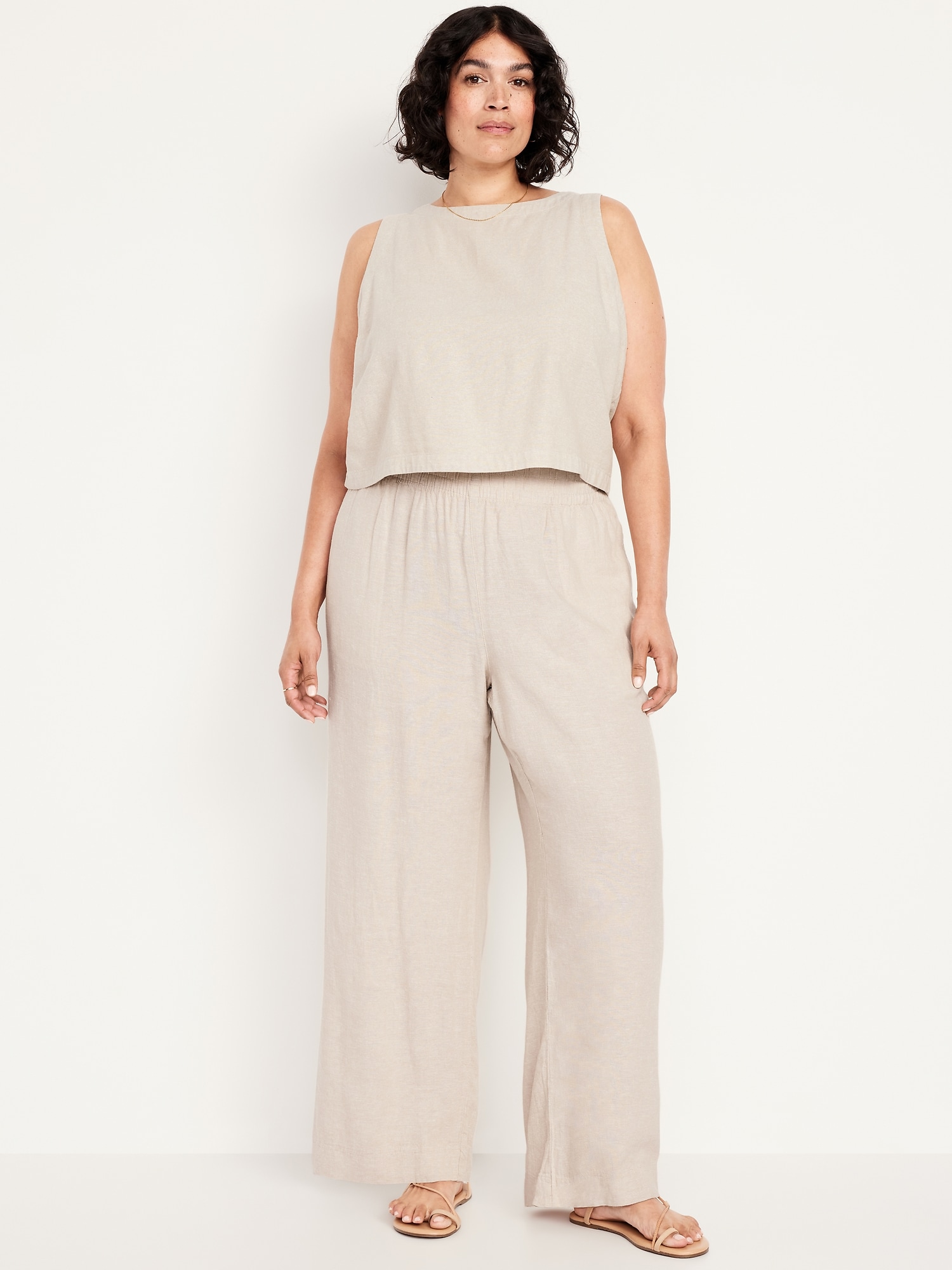 High-Waisted Linen-Blend Wide-Leg Pants: elastic-drawstring high waistband, on-seam hip pockets, super wide leg, easy pull-on style, online exclusive, #683345