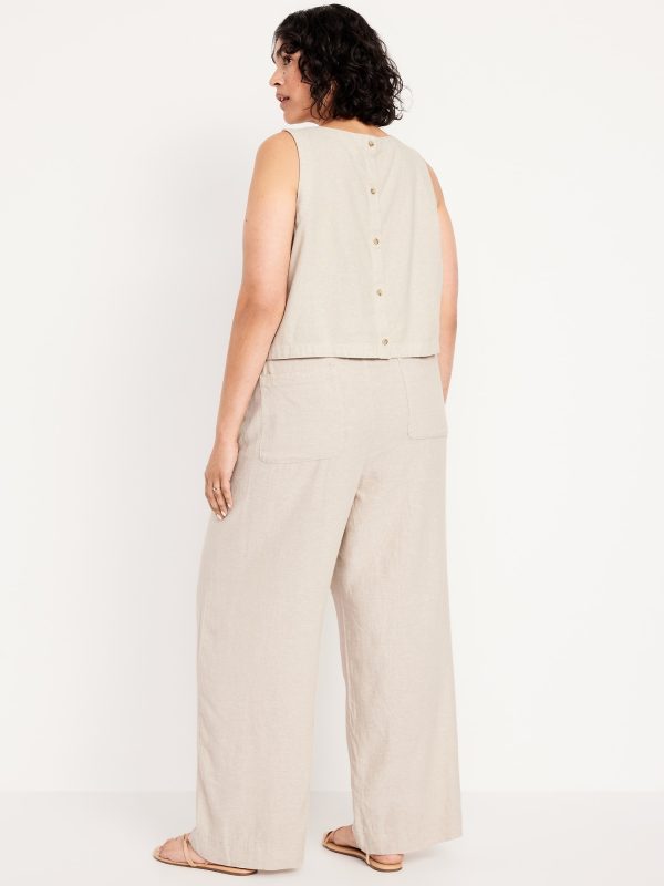 High-Waisted Linen-Blend Wide-Leg Pants: elastic-drawstring high waistband, on-seam hip pockets, super wide leg, easy pull-on style, online exclusive, #683345