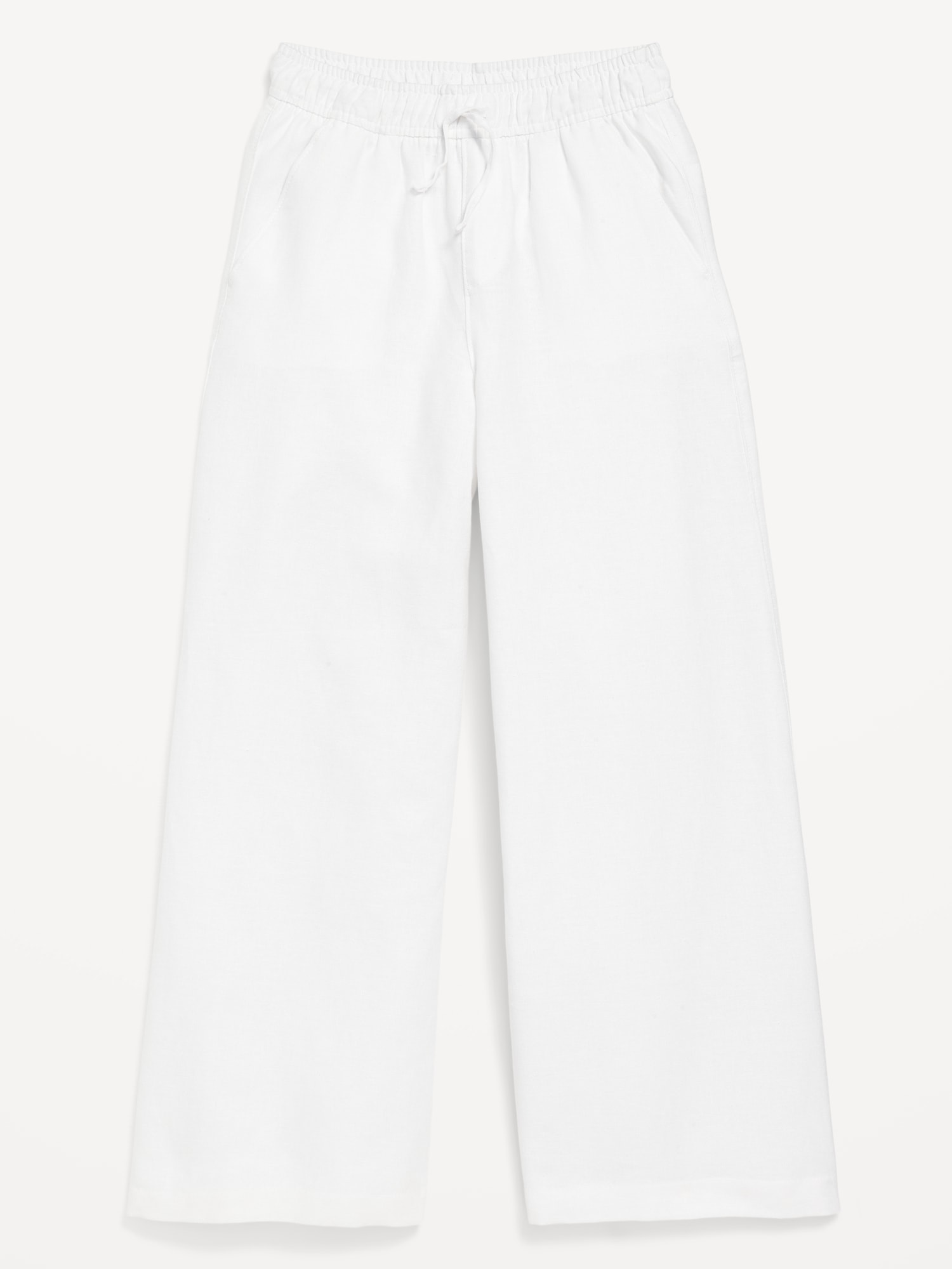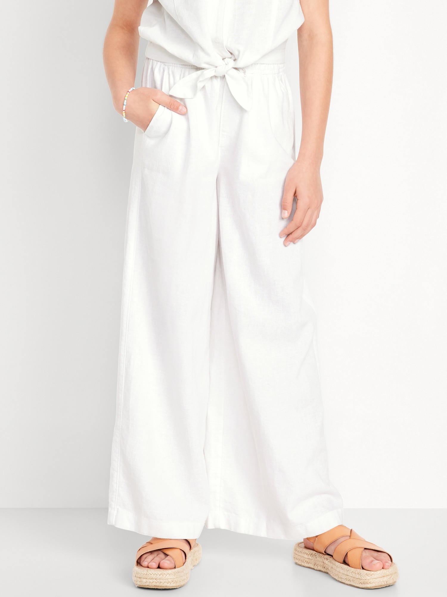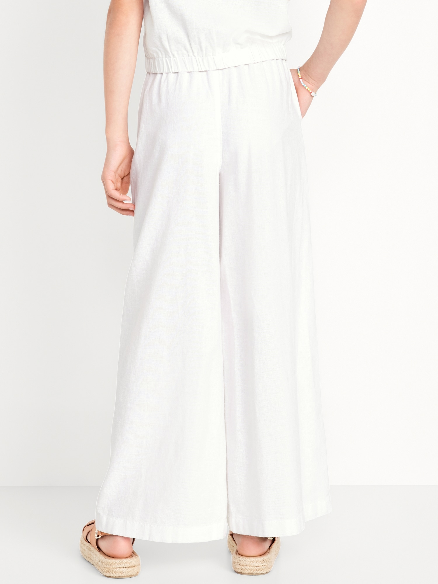 High-Waisted Linen-Blend Wide-Leg Pants for Girls: elasticized waistband, high rise, functional drawstring, diagonal on-seam pockets, wide leg, easy pull-on style, #704705