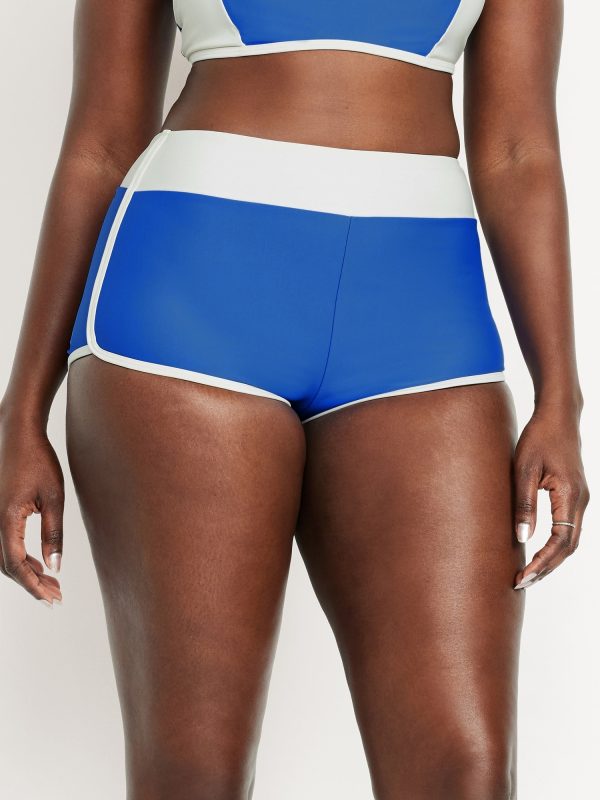 High-Waisted Matte Swim Shorts: high elastic waistband, dolphin hem, elastic leg openings, #747893