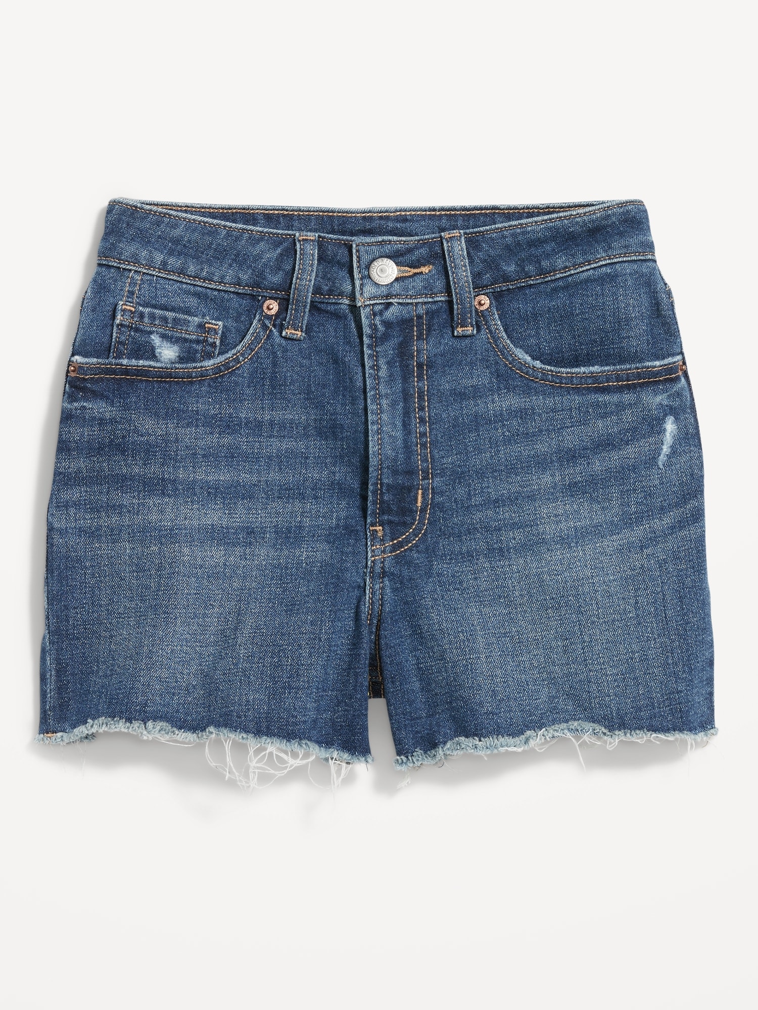High-Waisted OG Jean Shorts — 3-inch inseam: button front, belt loops, zip front, front scoop pockets, back patch pockets, cutoff hem, #846719