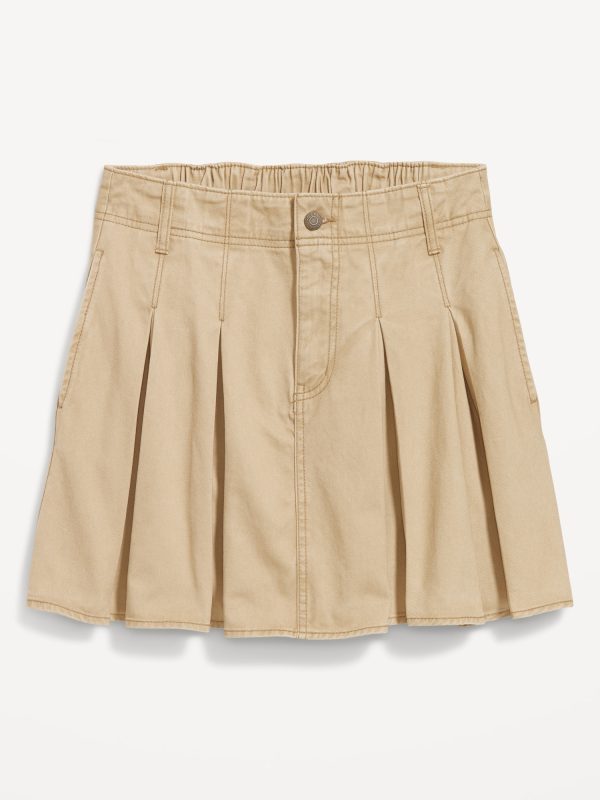 High-Waisted Pleated Mini Skirt: elasticized back waist, side-seam pockets, button front, zip fly, pleated skirt, #808760