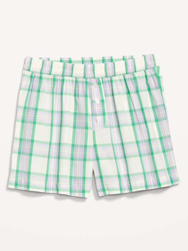 High-Waisted Poplin Boxer Pajama Shorts: elastic waistband, decorative button fly, plaid print, #798497