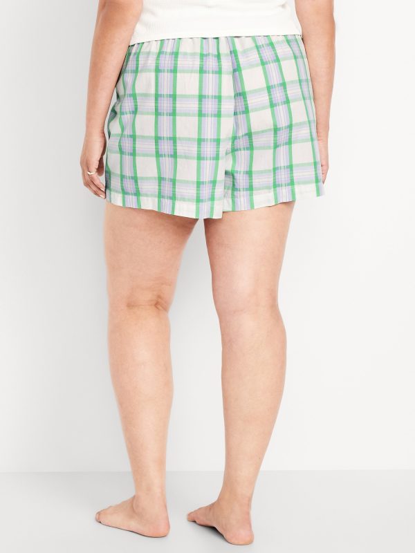 High-Waisted Poplin Boxer Pajama Shorts: elastic waistband, decorative button fly, plaid print, #798497