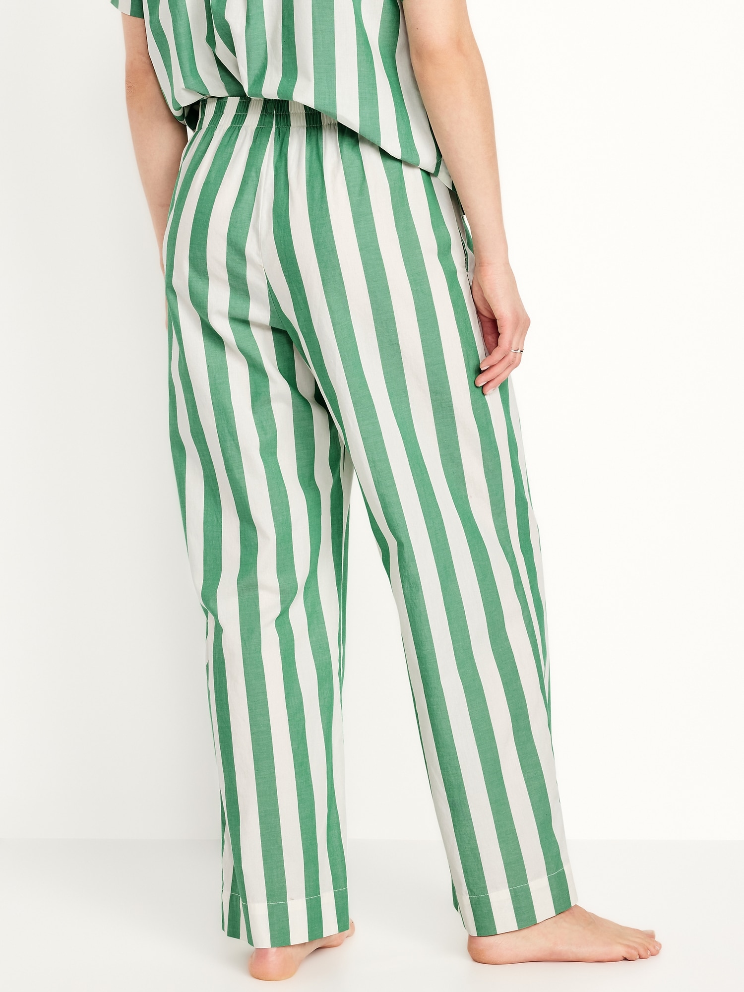 High-Waisted Poplin Pajama Pant: Crisp, breathable cotton that’s classic for a reason.elastic waist, three-button fly, prints match back to the fam, #889319