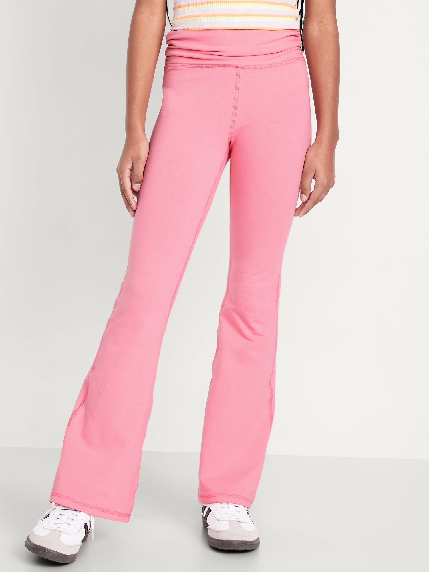 High-Waisted PowerChill Side-Ruched Flared Leggings for Girls: elasticized waistband, ruching at waist, flared hem, #782503