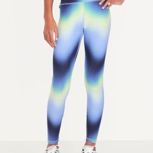 High-Waisted PowerSoft 7/8-Length Performance Leggings for Girls: elasticized waistband, high-rise, light-reflecting logo at back, ombre, #583781