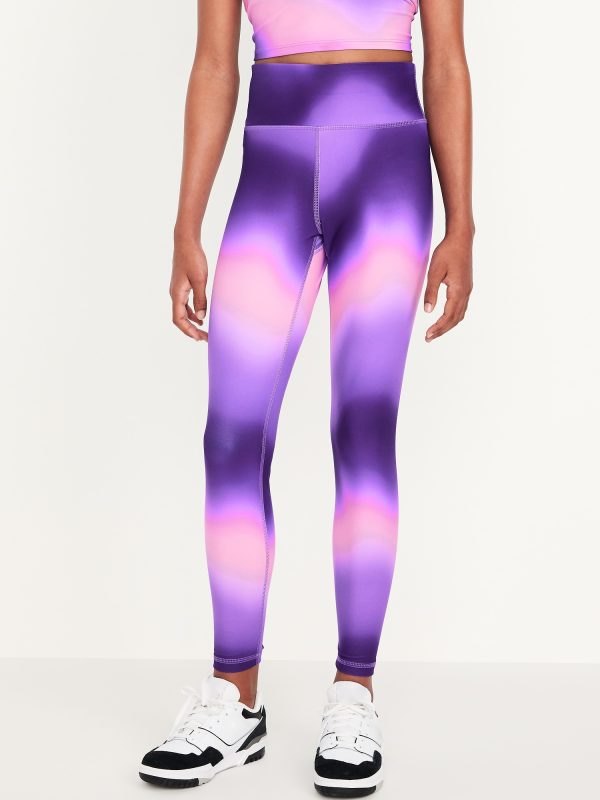 High-Waisted PowerSoft 7/8-Length Performance Leggings for Girls: elasticized waistband, high-rise, light-reflecting logo at back, ombre, #583781
