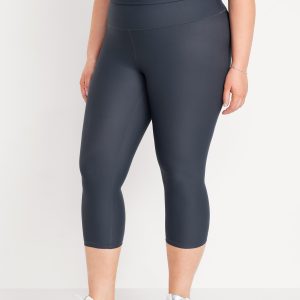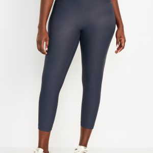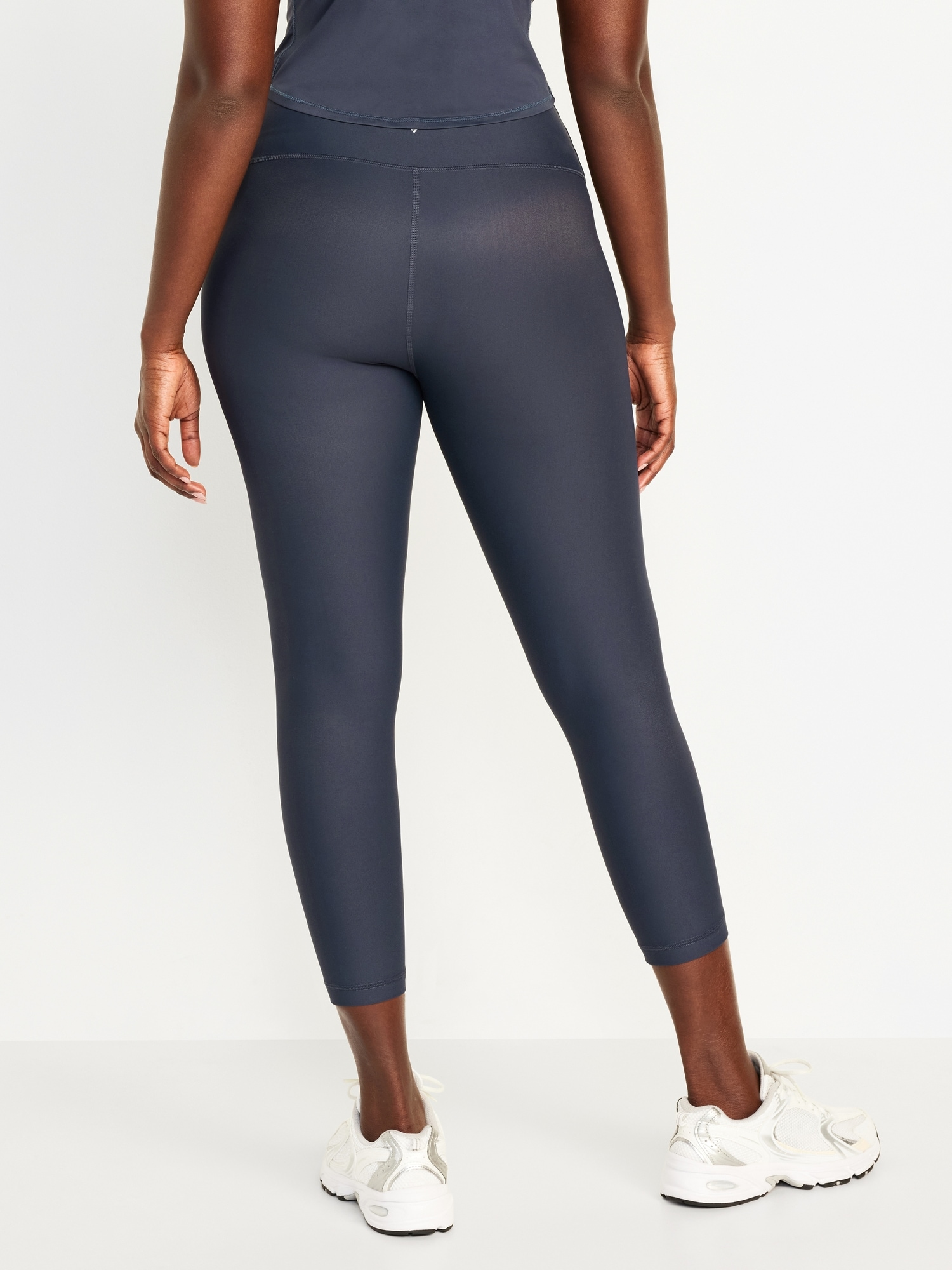 High-Waisted PowerSoft Crop Leggings: Featuring PowerSoft. Light compression meets a peachy-smooth, sweat-wicking fabric.elasticized waist, breathable, go-dry wicks moisture, #664727