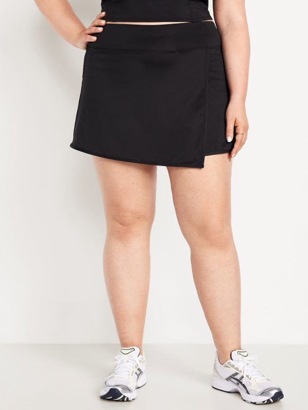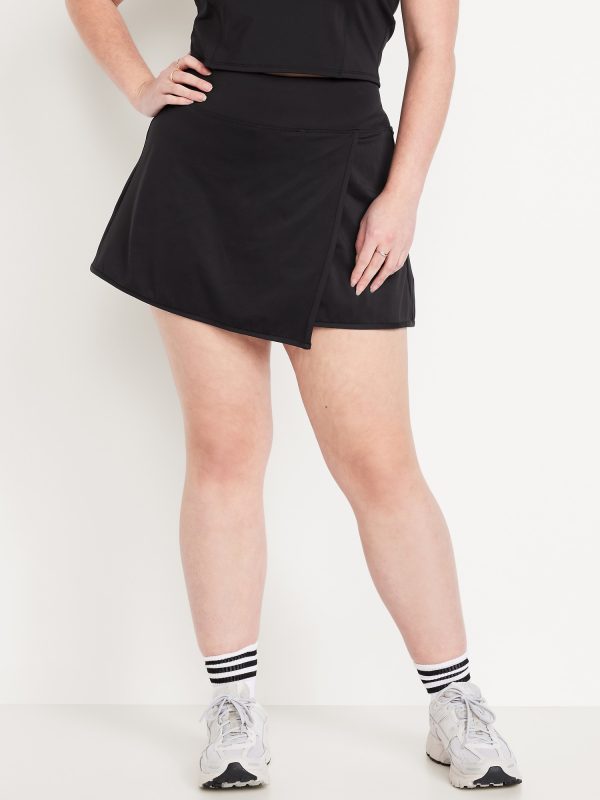 High-Waisted PowerSoft Faux-Wrap Skort: Featuring PowerSoft. Light compression meets a peachy-smooth, sweat-wicking fabric.pull-on waistband, faux-wrap front, built-in bike shorts, mini length, go-dry wicks moisture, breathable, #694169