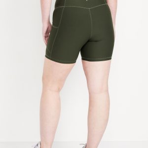 High-Waisted PowerSoft Pocket Biker Shorts — 6-inch inseam: Featuring PowerSoft. Light compression meets a peachy-smooth, sweat-wicking fabric.pull-on waist, side pocket fits your phone, go-dry wicks moisture, #662948