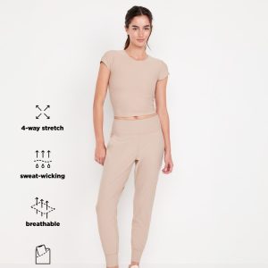 High-Waisted PowerSoft Pocket Joggers: Featuring PowerSoft. Light compression meets a peachy-smooth, sweat-wicking fabric.new waistband has more hold, less pinching, pockets fit your phone, banded cuffs, go-dry wicks moisture, breathable, available in maternity sizes, #479566