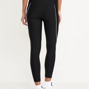 High-Waisted PowerSoft Rib Mix 7/8 Leggings: Featuring PowerSoft. Light compression meets a peachy-smooth, sweat-wicking fabric.ribbed side panels, contrasting piping, go-dry wicks moisture, #749127