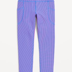 High-Waisted PowerSoft Ribbed Performance 7/8 Leggings for Girls: elasticized waistband, high-rise, light-reflecting logo at back, side pockets, #762169