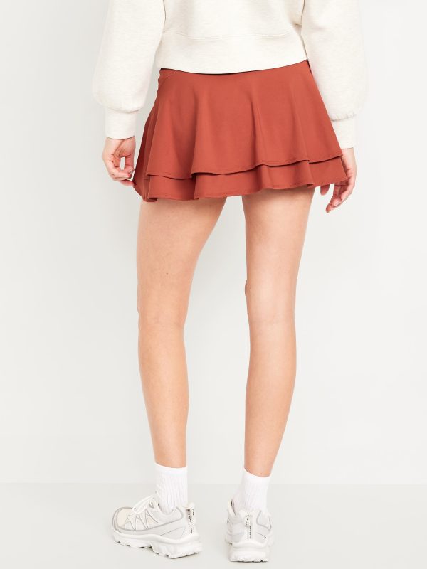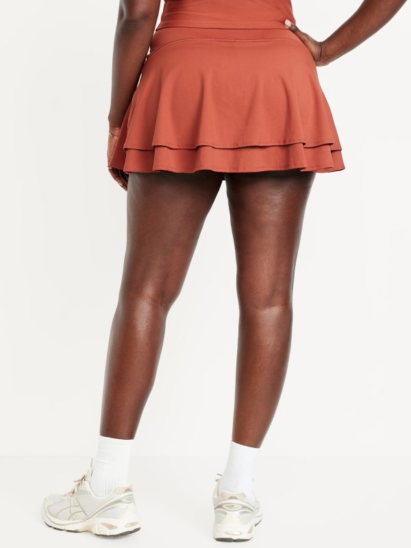 High-Waisted PowerSoft Skort: Featuring PowerSoft. Light compression meets a peachy-smooth, sweat-wicking fabric.elasticized waist, pocket fits your phone, built-in biker shorts, tiered ruffles at back, go-dry wicks moisture, #400173