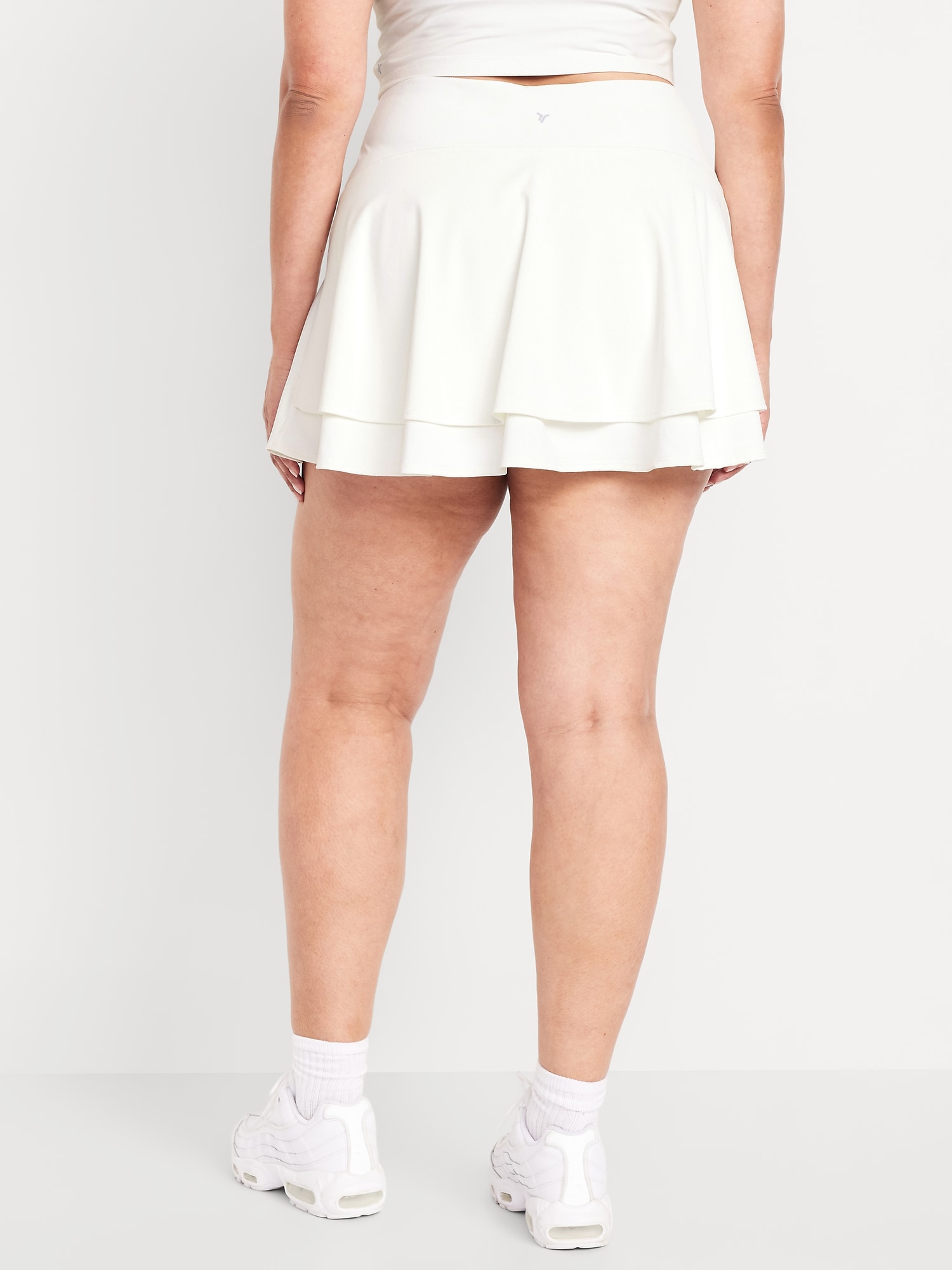 High-Waisted PowerSoft Skort: Featuring PowerSoft. Light compression meets a peachy-smooth, sweat-wicking fabric.elasticized waist, pocket fits your phone, built-in biker shorts, tiered ruffles at back, go-dry wicks moisture, #400173