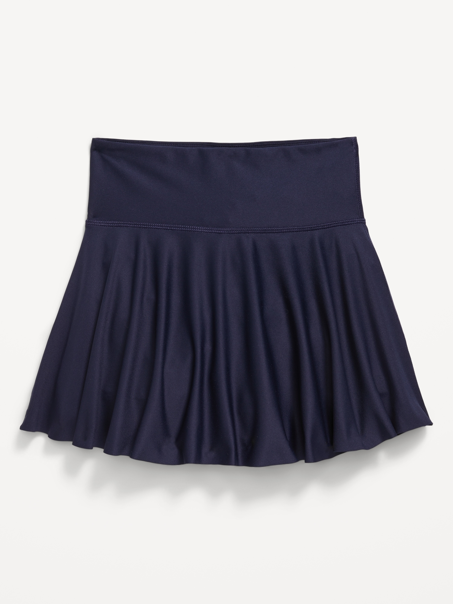 High-Waisted PowerSoft Uniform Skort for Girls: high-rise, elasticized waistband, reflective logo in back, mini-length skirt, built-in biker shorts, side pocket on shorts, easy pull-on style, #831549
