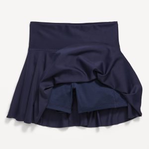 High-Waisted PowerSoft Uniform Skort for Girls: high-rise, elasticized waistband, reflective logo in back, mini-length skirt, built-in biker shorts, side pocket on shorts, easy pull-on style, #831549
