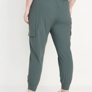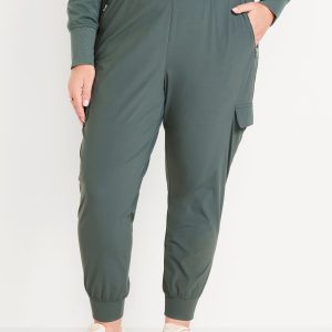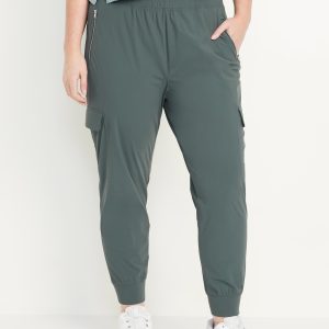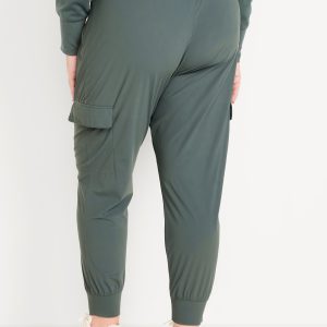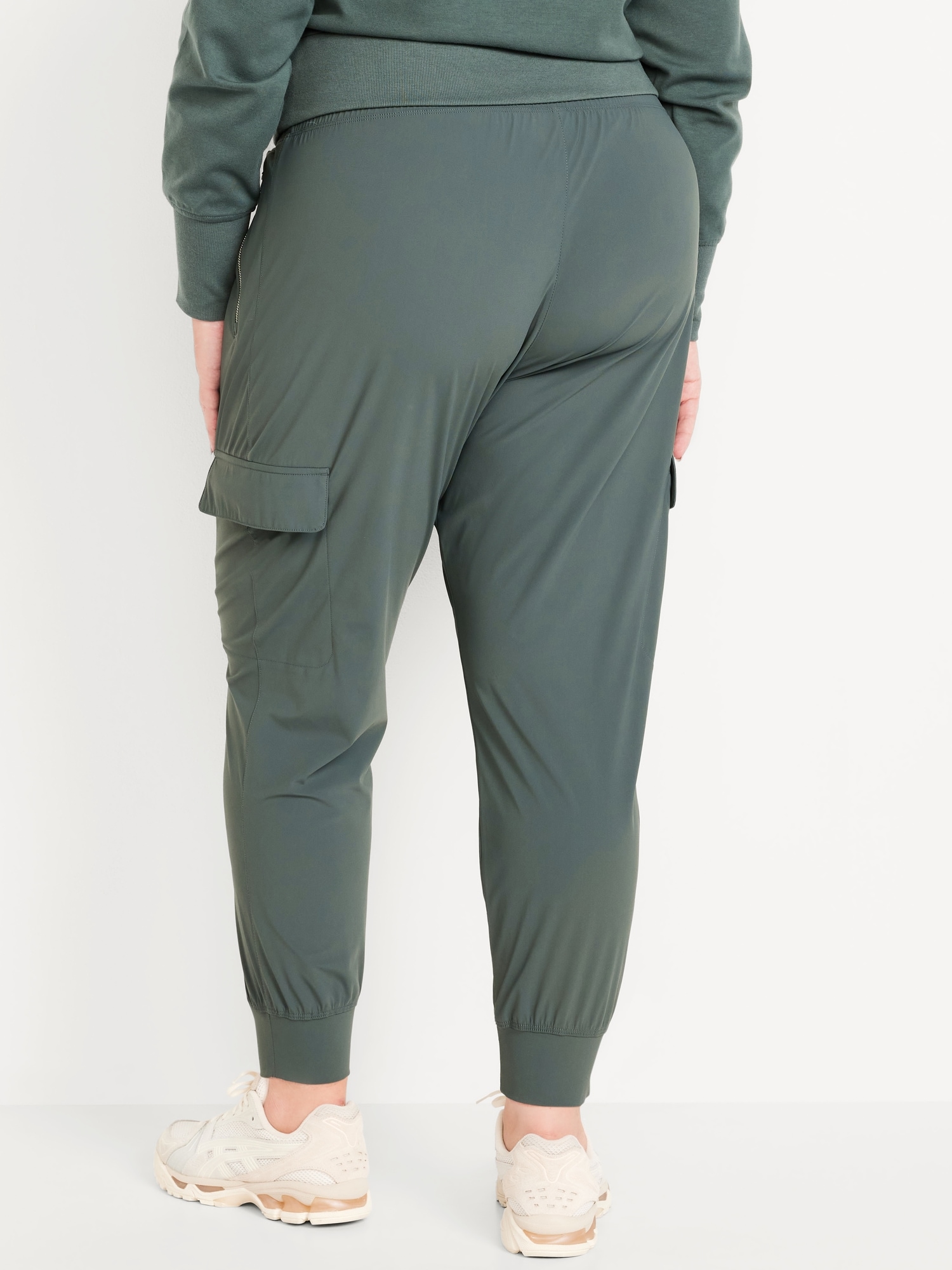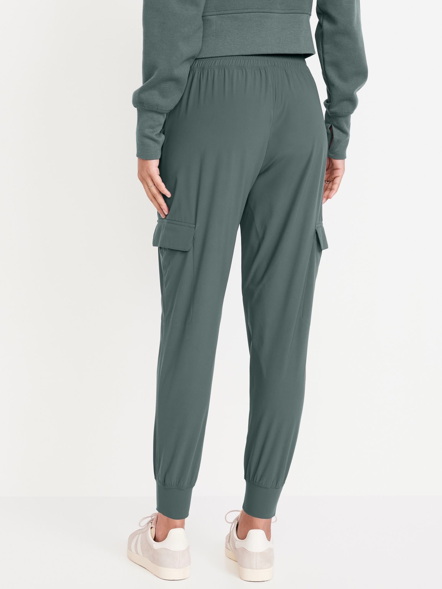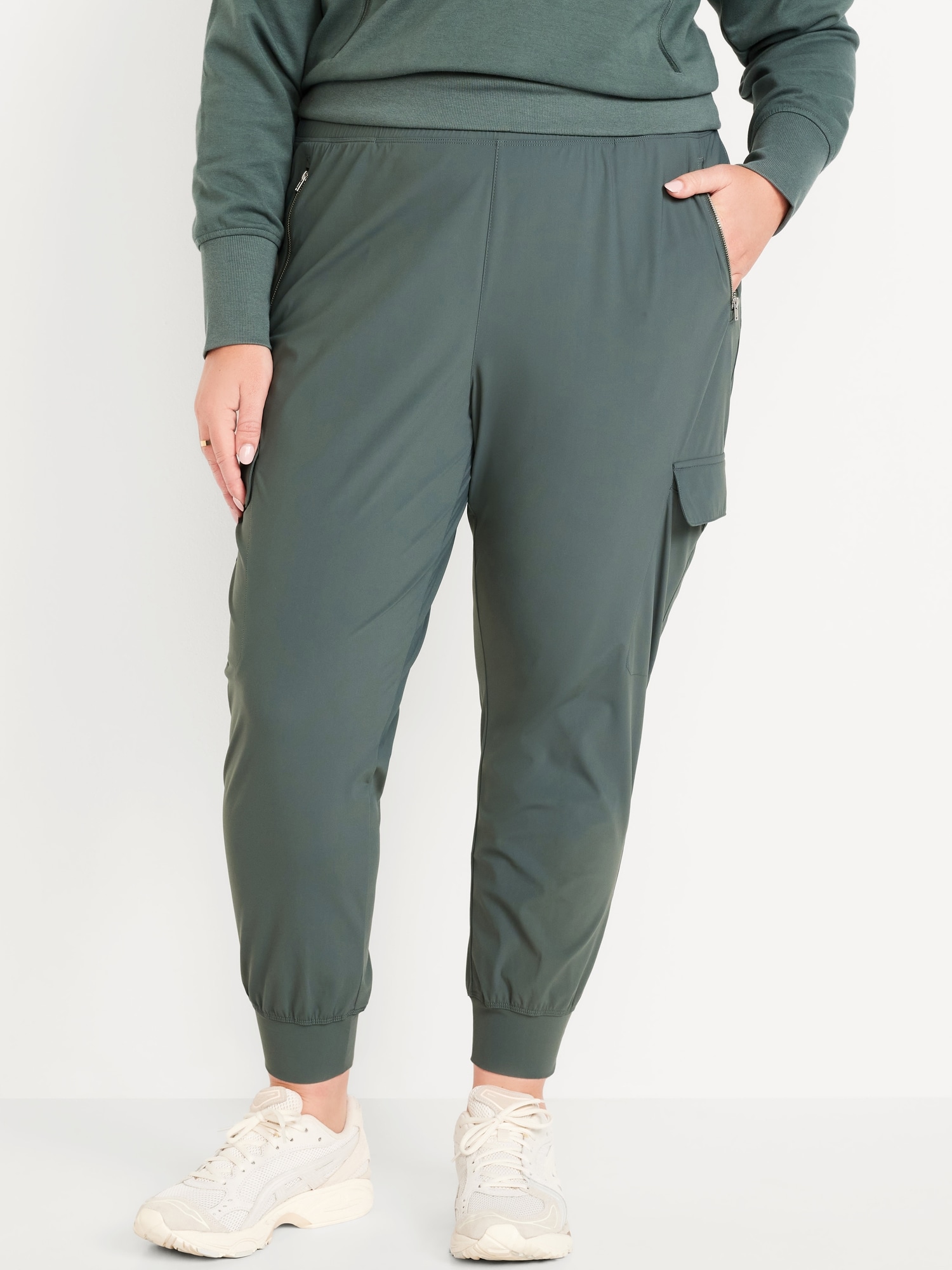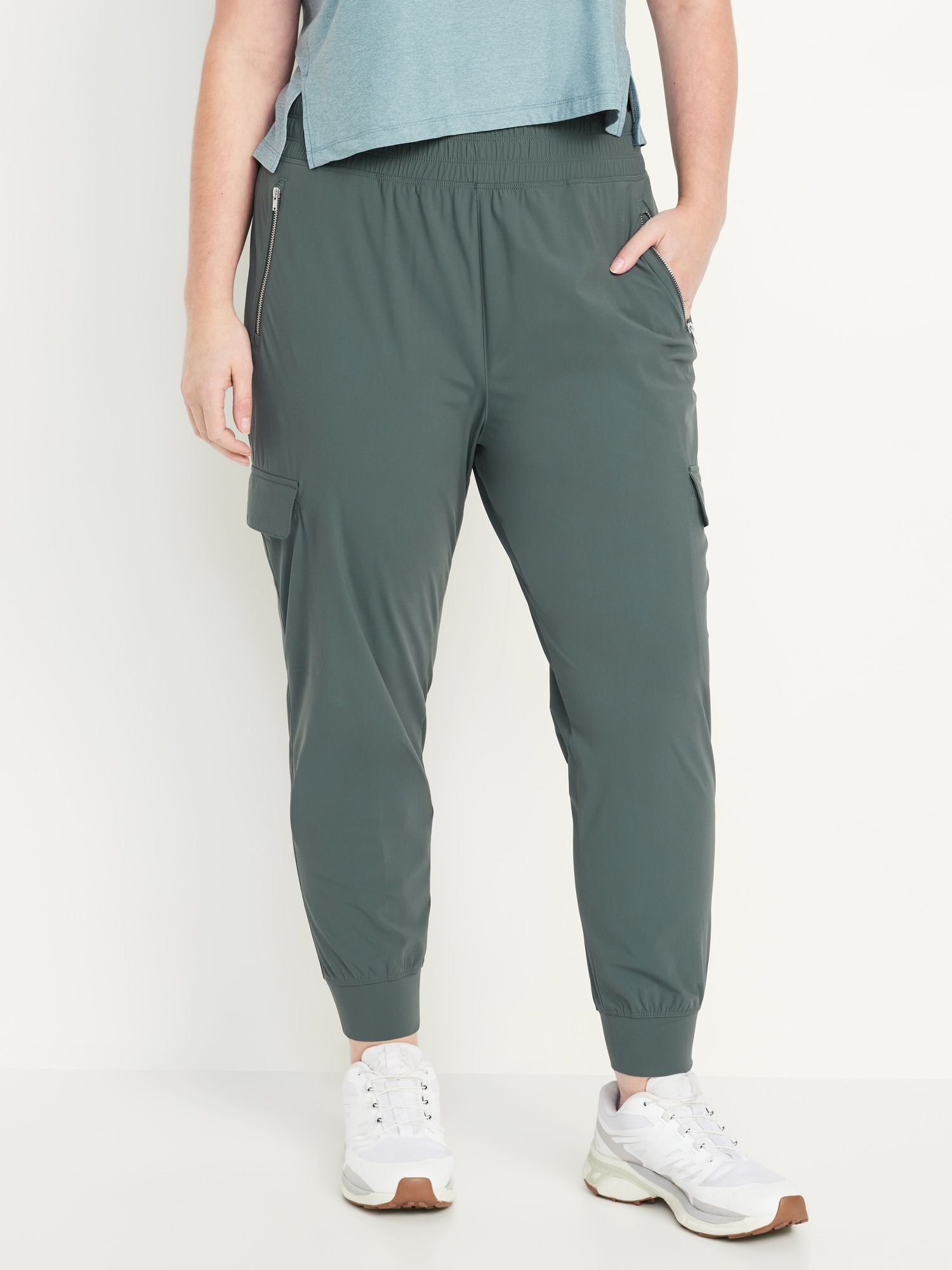 High-Waisted SleekTech Cargo Joggers: Featuring SleekTech. Polished and lightweight, with serious stretch.elastic waist, zippered hip pockets, flap-cargo pockets at thigh, go-dry wicks moisture, breathable, pull-on style, #569700