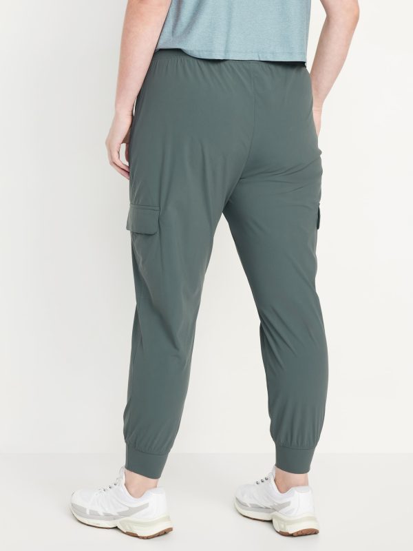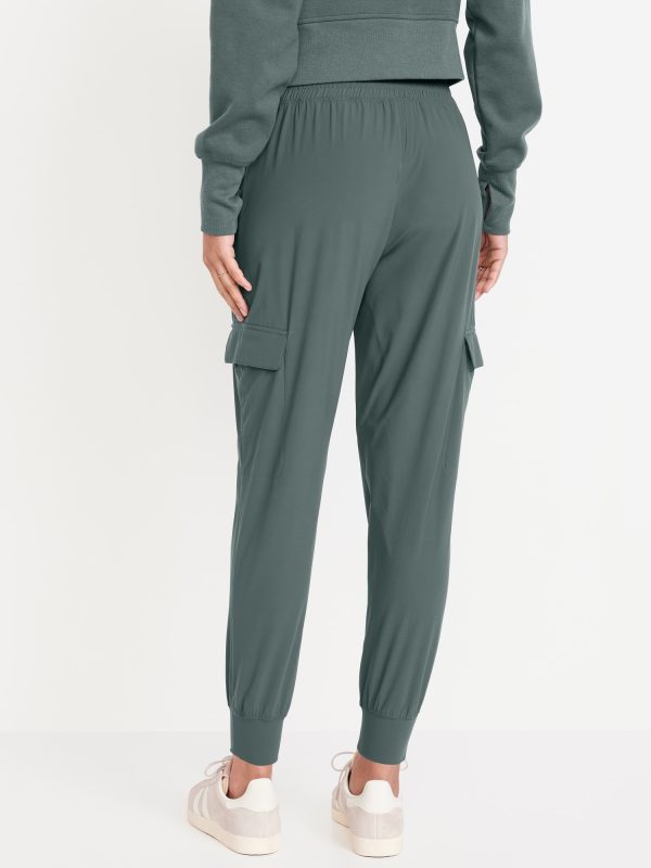 High-Waisted SleekTech Cargo Joggers: Featuring SleekTech. Polished and lightweight, with serious stretch.elastic waist, zippered hip pockets, flap-cargo pockets at thigh, go-dry wicks moisture, breathable, pull-on style, #569700