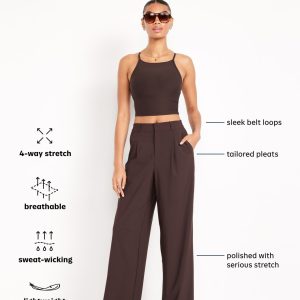High-Waisted SleekTech Trouser Pants: Featuring SleekTech. Polished and lightweight, with serious stretch.high waist with belt loops, elastic back waist, functional zip fly, diagonal hip pockets, faux-welt back pocket, go-dry wicks moisture, #784434