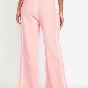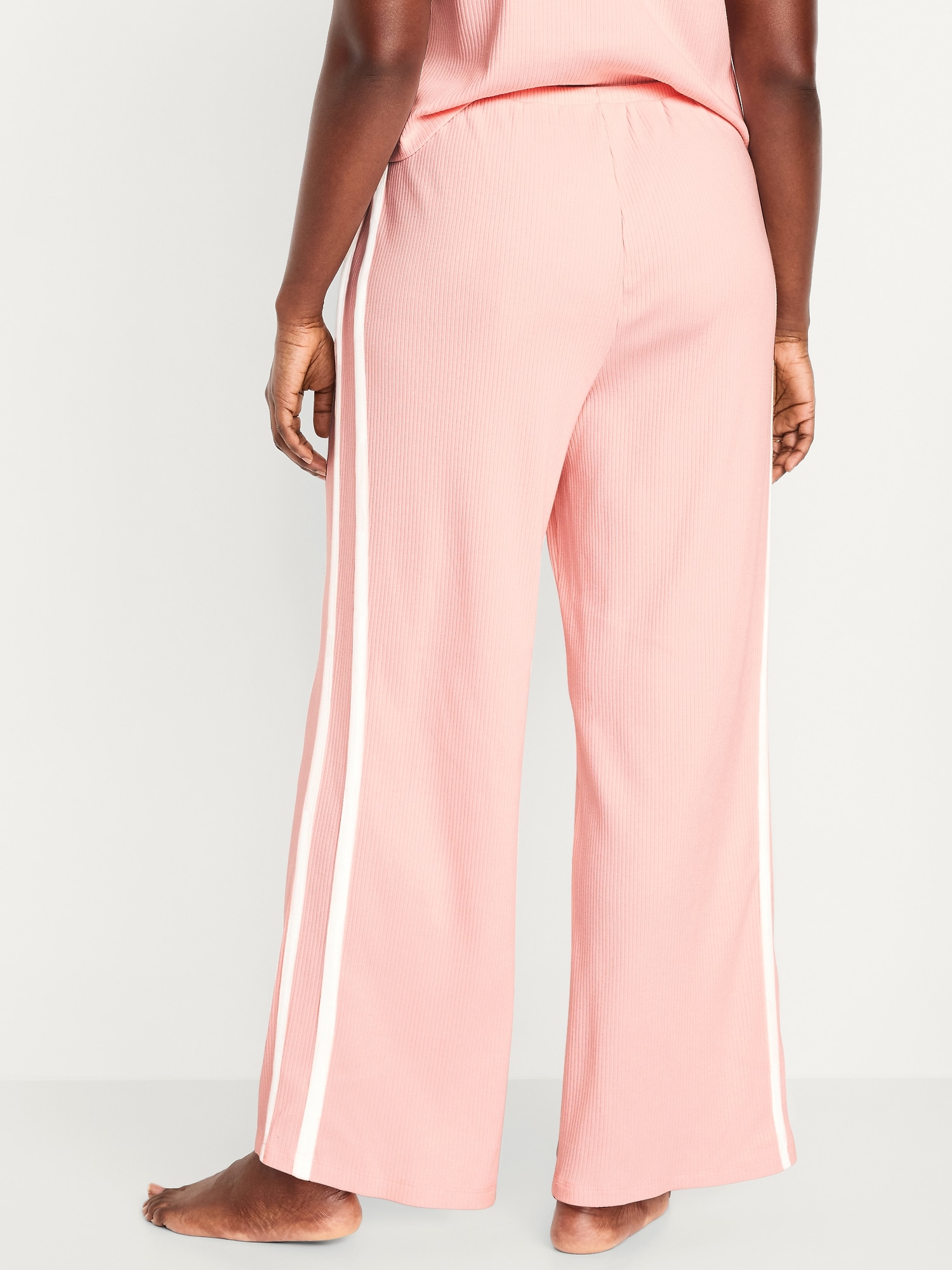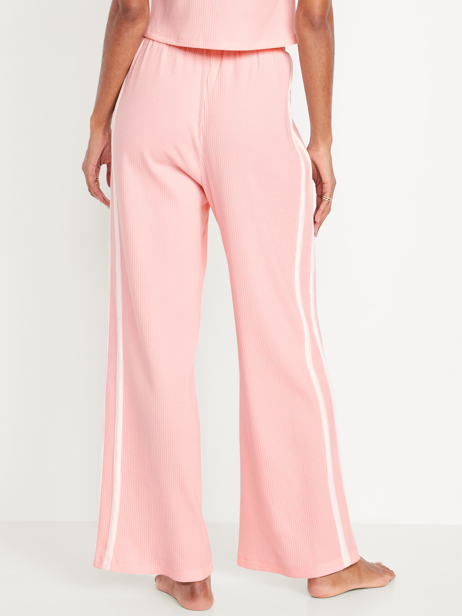 High-Waisted Slouchy Lounge Pants: elastic-drawstring waistband, slouchy barrel leg, pull-on style, floral print, #766757