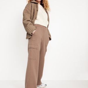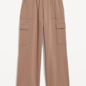 High-Waisted SoComfy Cargo Wide-Leg Sweatpants: The perfect-weight, never-taking-this-off fleece.high elastic waistband, front pockets, flap-cargo pockets at thigh, wide leg, pull-on style, #764226