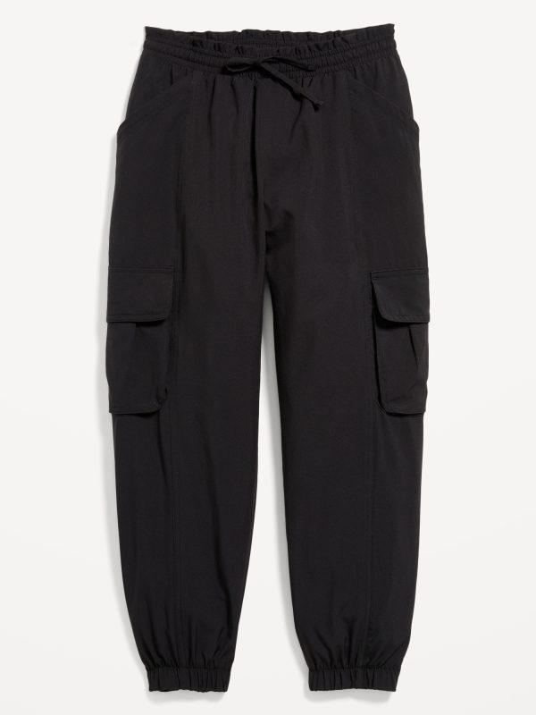High-Waisted StretchTech Performance Joggers for Girls: high rise, elasticized waistband, functional drawstring, diagonal utility pockets, cargo flap pockets at each leg, cinched leg cuffs, #766991